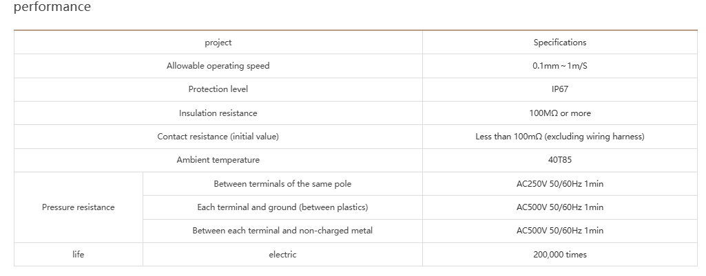 Endurance : Mechanical: 500,000 operations min.; Electrical: 10,000operations min.